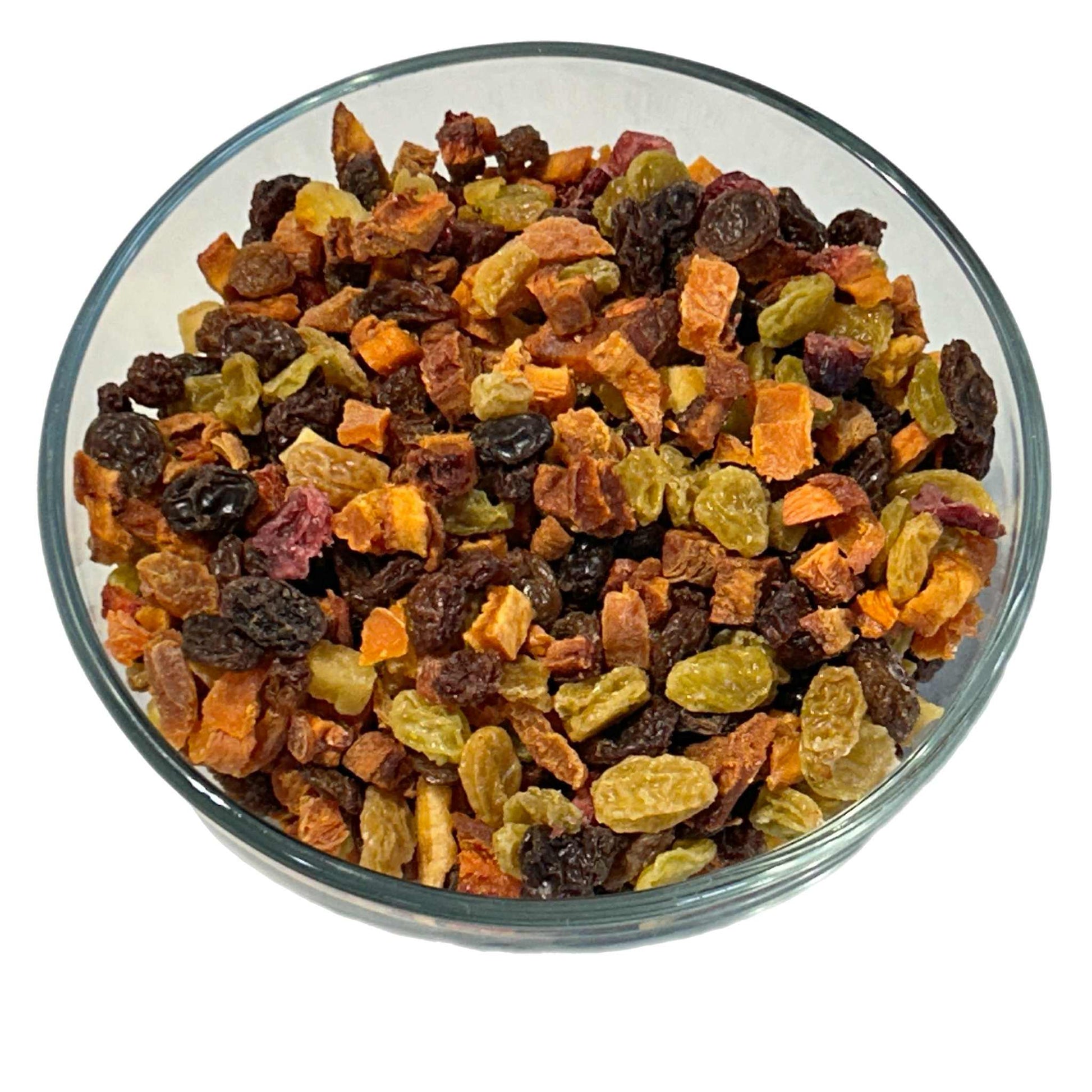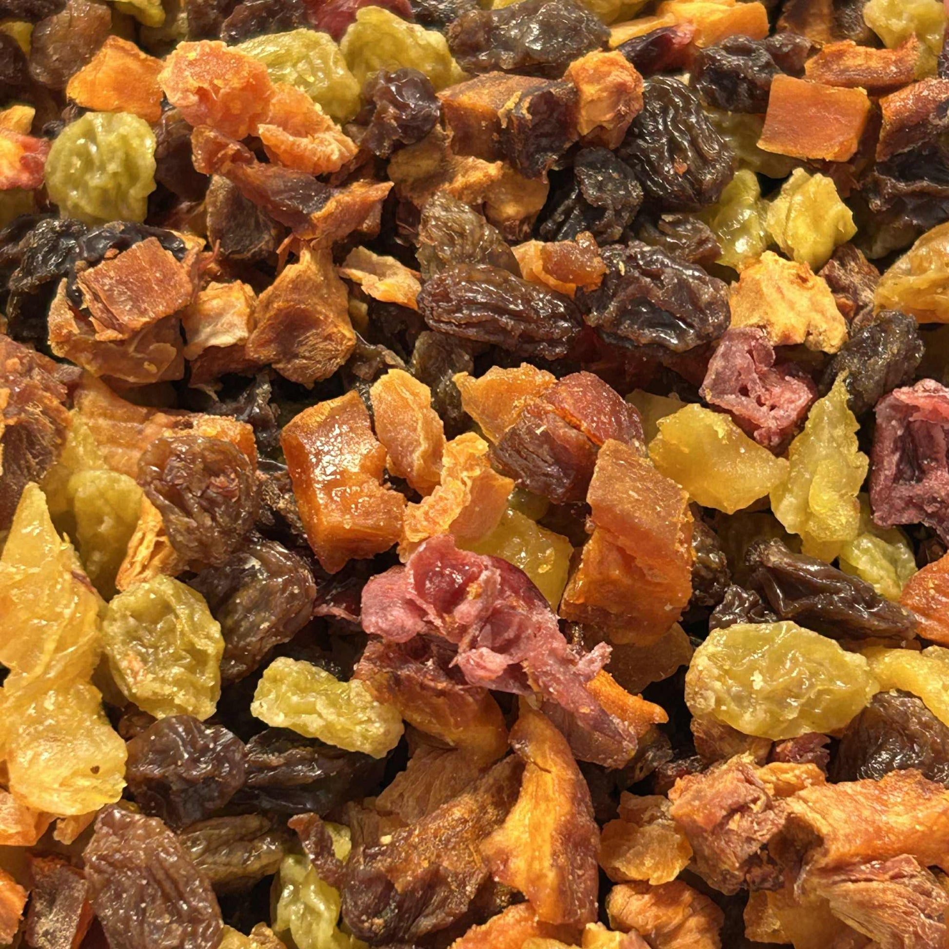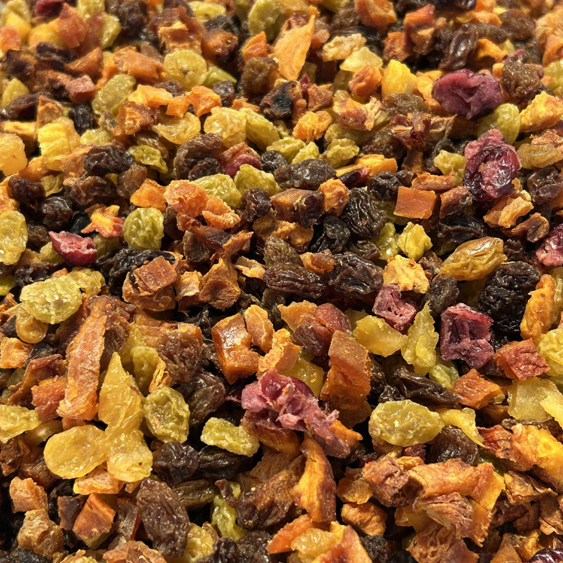 Ingredients: Diced Apricots, Peaches, Nectarines, Pears, Dark & Gold raisins, Cranberries (sugar, sunflower oil)