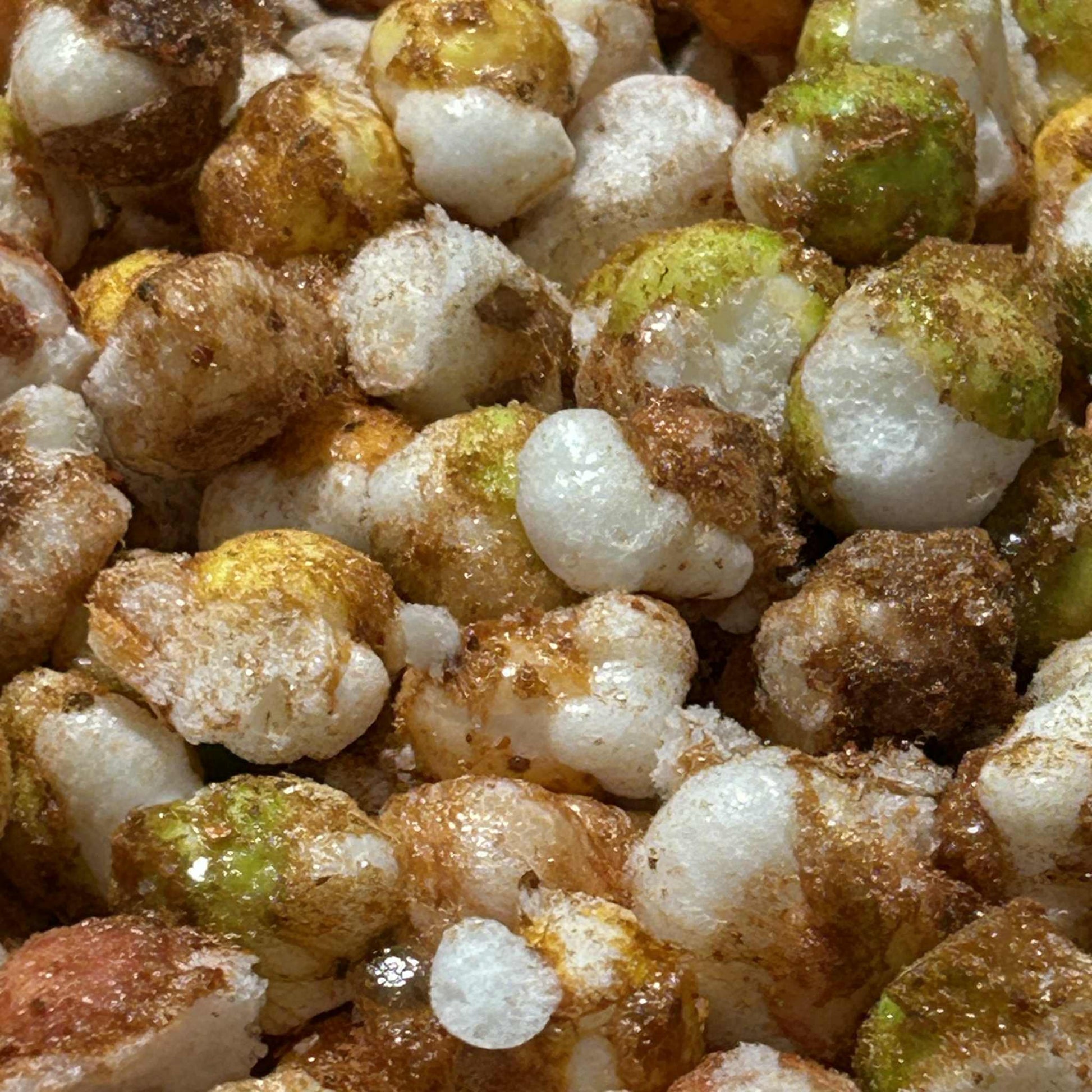 Freeze Dried rainbow Fruity Chamoy & Lime Seasoning are double the size of a skittle with a crunchy not hard texture. The flavor is enhanced because of the lack of moisture in the candy. The freeze drying process takes all the gummy and chewiness out of candies making them easier on teeth and dental work. Everything I make is fresh to order, nothing has been sitting in a warehouse or storage!