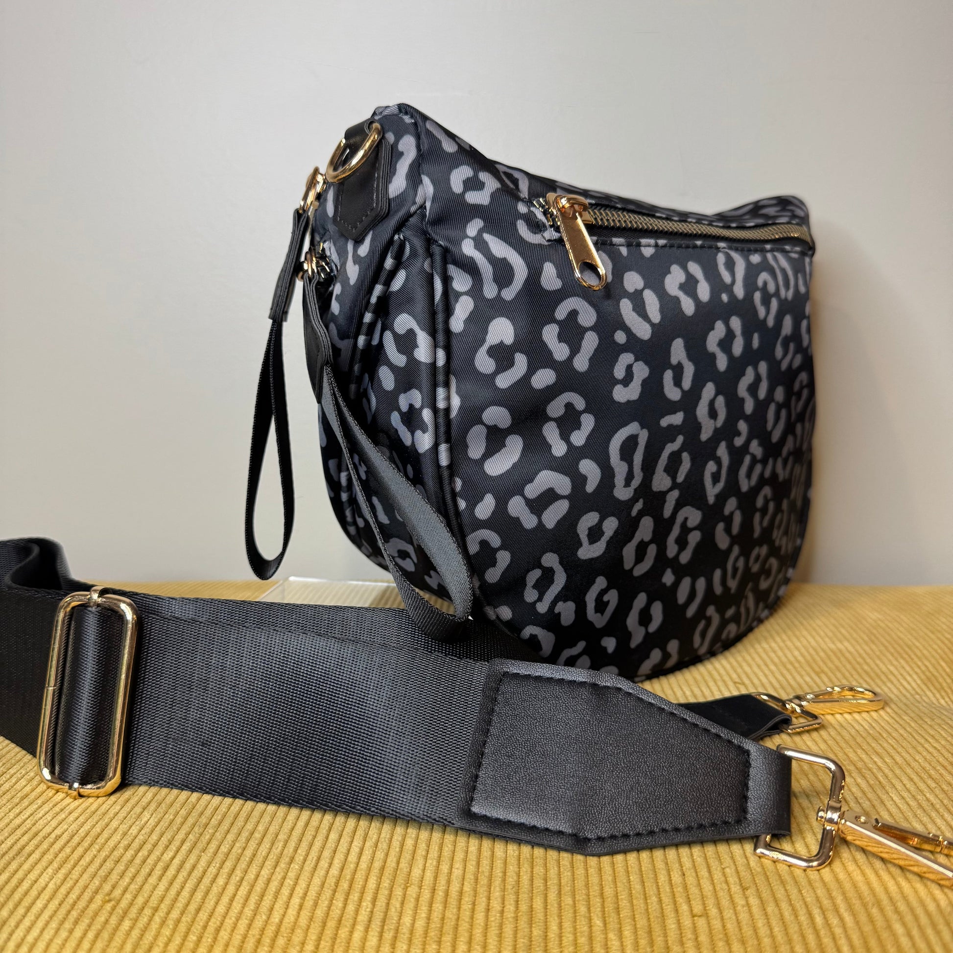 Roni - Nylon Crossbody - Black & Grey Animal