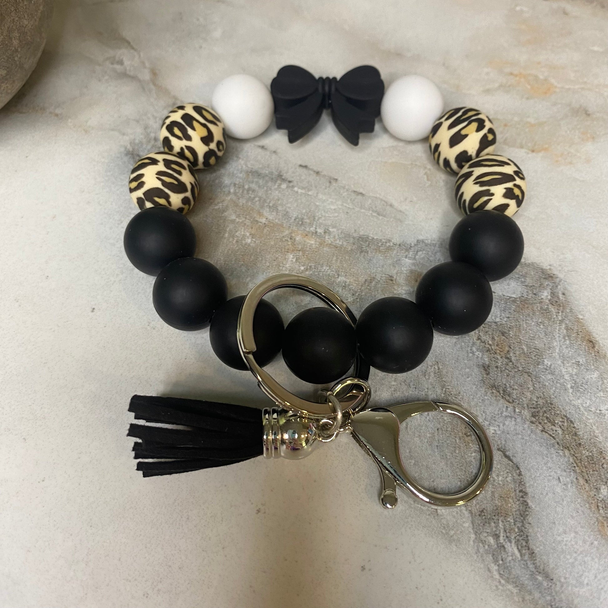 Silicone Bracelet Keychain - Black Bow