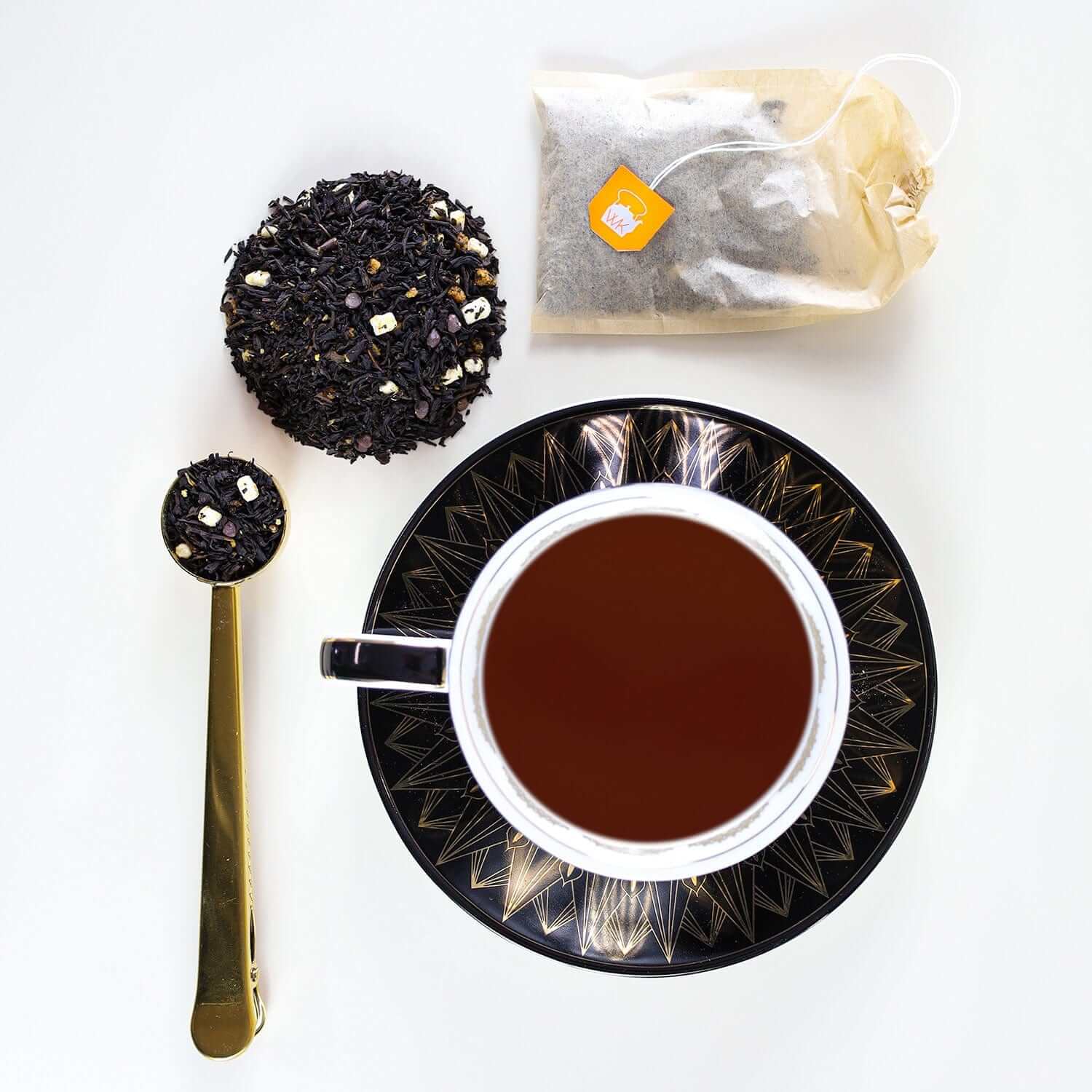 This blend of black tea with graham cracker crumbles, marshmallow, and chocolate is brought together with the sweetness of toffee pieces to recreate the fireside favorite S'mores. Enjoy your s'mores, without the mess.